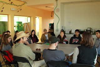 Today sixty 6th graders from Aptos Middle School spent the day at the EcoCenter and Heron's Head Park. CCSF faculty and student interns along with Tracy and Austin from Rec and Park led four activities on energy, wetlands and wastewater treatment, a scavenger hunt style tour of the EcoCenter, and bird surveying in the park. The energy activities included manipulating a solar panel to power a water fountain, making a solar chocolate fondue with fresh organic fruit and organic fair trade chocolate. Students were also able to make themselves smoothies with a pedal powered blender. Another highlight of the day for many of the kids was viewing the constructed wetland and pond organisms under the microscope and guessing which organism was which and their roles in the food web. The day was a long one - it began at 8 am with CCSF students preparing for the day. The Aptos students arrived at 10:30 am and stayed until 2:30 pm. The afternoon was followed by the Sust 91 end of semester "Presentation of Learning" and potluck.